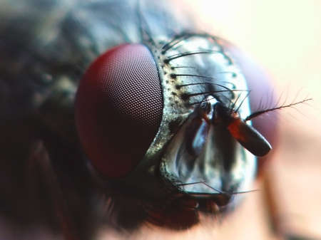 An extreme closeup of housefly resting on a surface