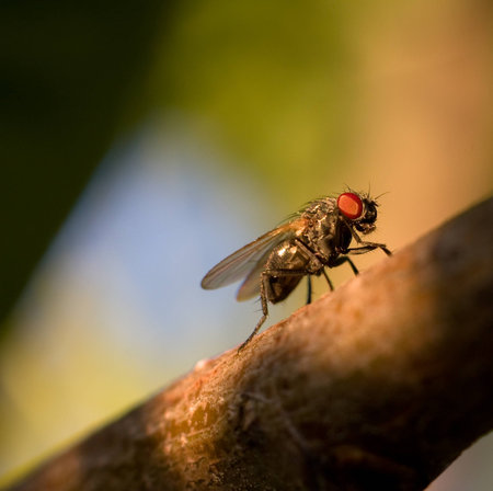 Housefly close up Macro shot. The housefly is a fly of the suborder Cyclorrhapha, and has spread all over the world as a commensal of humans. It is the most common fly species found in houses