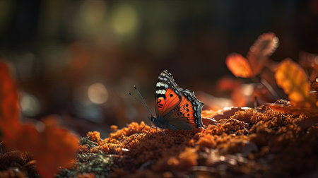 Vibrant butterfly spotted in tranquil forest, pollinating endangered species generated by artificial intelligence