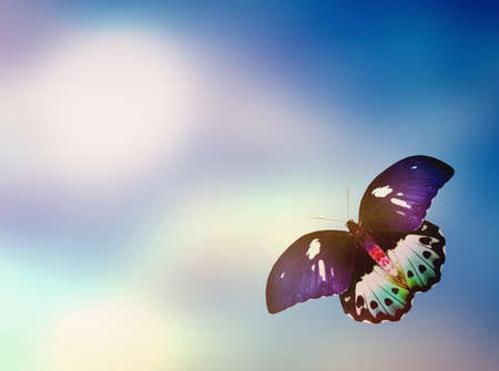 Vintage background with flying butterfly