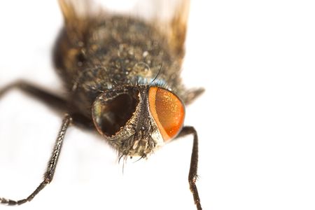 Housefly close up Macro shot. The housefly is a fly of the suborder Cyclorrhapha, and has spread all over the world as a commensal of humans. It is the most common fly species found in houses