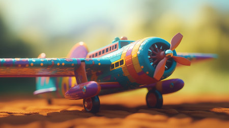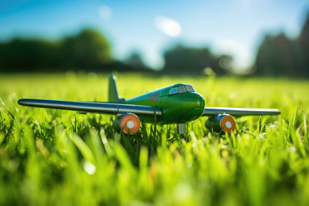 toy plane placed on a patch of vibrant green grass with sunlight in the background, created with generative ai