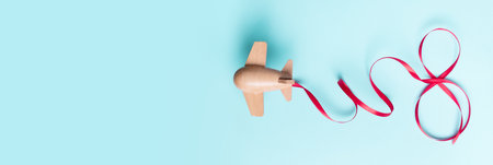 small wooden toy airplane carries a figure-shaped ribbon 8