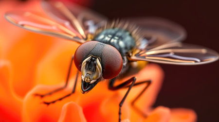 A macro photograph showcasing a detailed view of a fly.