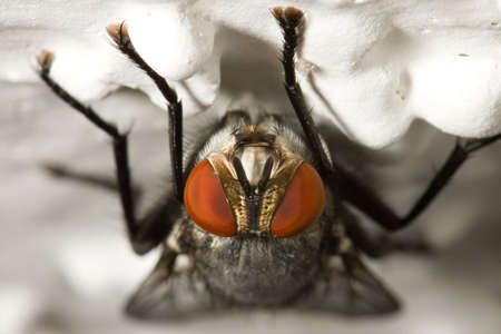Macro shot of a fly. Macro of a fly's eyes.