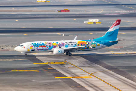Dubai, United Arab Emirates - May 27, 2021: Luxair Boeing 737-800 airplane in the Sumo special livery at Dubai airport (DXB) in the United Arab Emirates.