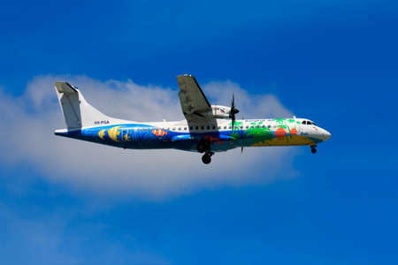CHIANGMAI THAILAND - SEPTEMBER 2017 Nok Air airplane landing at Chiangmai international airport in Morning day on September 4,2017 in Chiangmai Thailand
