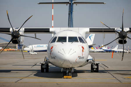 Otopeni, Romania - April 9, 2020: Tarom (the operating airline of Romania) airplane on Henri Coanda International Airport.