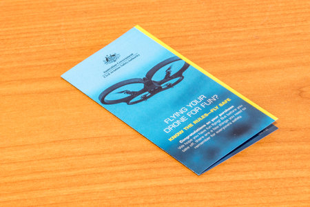 Pruszcz Gdanski, Poland - February 1, 2022: Brochure on flying drones in Australia.