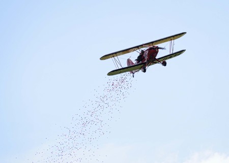 Agricultural Fumigation Aircraft carrying out fumigation work against mosquitoes in the province of Huelva, Andalusia, Spain