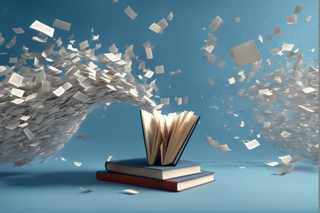 Open Books and Pages in Motion, Representing the Concept of Literature and Knowledge Explosion