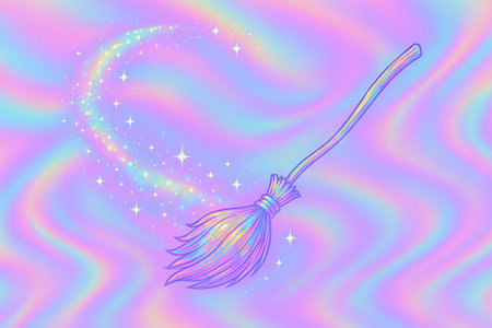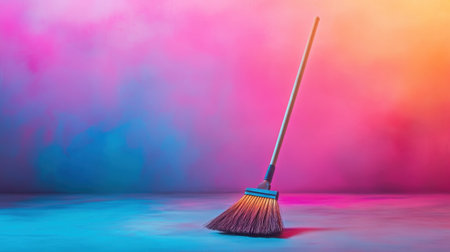 A colorful broom placed on an artistic gradient background blends vibrant hues, creating a striking visual appeal perfect for various creative projects.