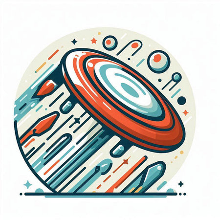 Dynamic Frisbee Flight: Aerodynamic Design and Team Logo in Action Under Stadium Lights