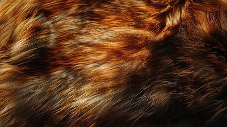 Captivating close up of flowing fur in rich, warm hues. The image captures fine detail, providing a sensory experience of texture and color. Generated AI.