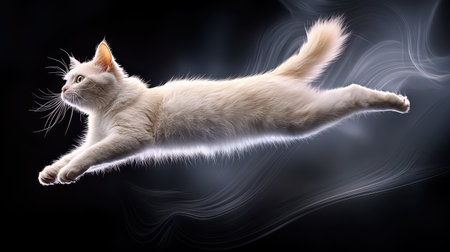 A cat jumping gracefully from a high surface, caught mid-air in an elegant leap.