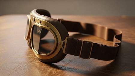Vintage steampunk goggles with sparkling reflections in motion.