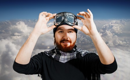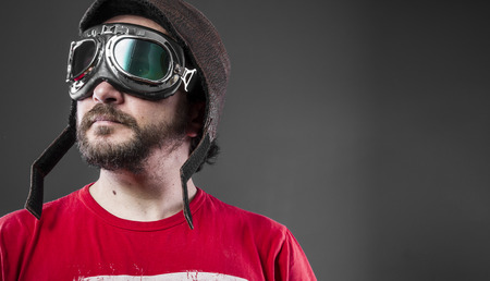 Funny pilot with goggles and helmet