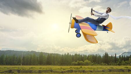 Two retro planes fly high in the sky togther. Teamwork or double effort concept
