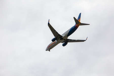 Pula, Croatia - May 19, 2019: big plane aircraft in overcast sky landing