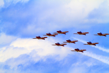 SPRINGBANK CANADA - JUN 20, 2015: The Snowbirds Demonstration Team demonstrate the skill, professionalism, and teamwork of Canadian Forces personnel during the Wings Over Springbank.