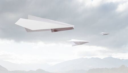 Two retro planes fly high in the sky togther. Teamwork or double effort concept