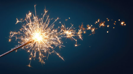 A stunning sparkler igniting with vibrant, glimmering sparks against a dark backdrop, symbolizing celebration and joy during festive moments.