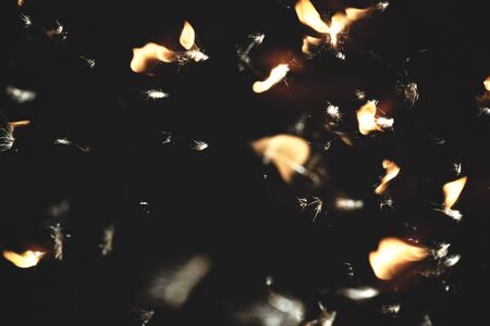 Bokeh lights on black background, shot of flying fire sparks in the air