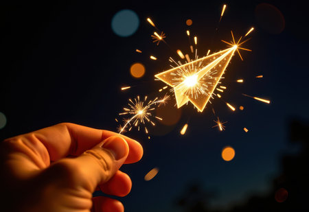 In a captivating display of light, vibrant sparks radiate joyfully, intertwining with soft bokeh highlights, creating an enchanting atmosphere filled with warmth and wonder.