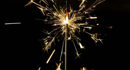 Burning firework sparks on black background, happy Christmas and New year celebration