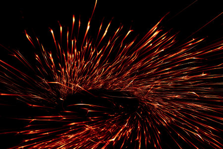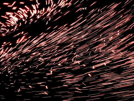 Grinding sparks illuminate a dark backdrop during metalworking activity