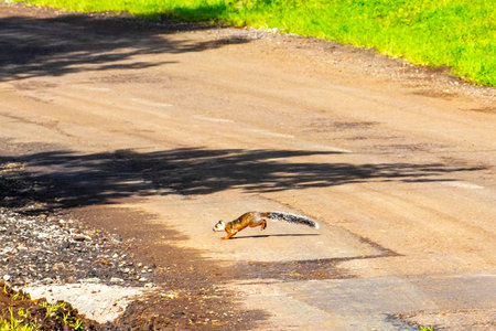 Red squirrel runs and jumps around in Central America.