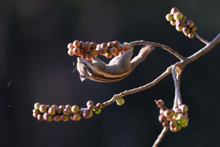brown squirrel climbing a tree In the garden, squirrels are mainly herbivores, such as nuts, berries, flowers.