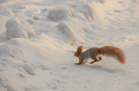 a squirrel jumping in winter snow