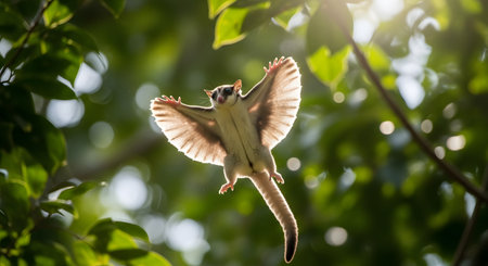 Flying squirrel in the forest on a sunny day. Wildlife scene from nature.