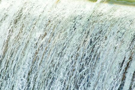 Powerful flow of waterfall, closeup. Background from wave nature water stream, macro view. Tropical pattern for relax. Wall fountain.