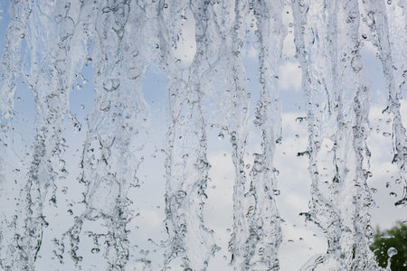Water splash with small drops in the fountain. Abstract natural, selective focus background - image
