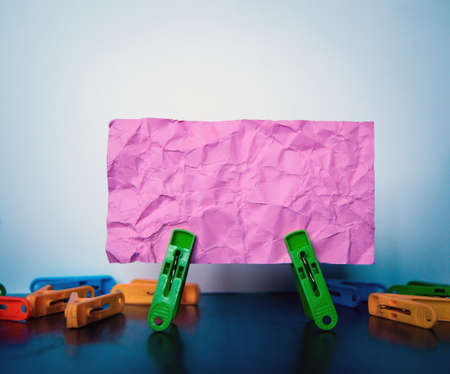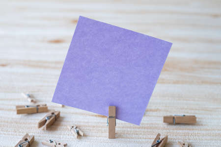 Wooden clothespin with a sheet of paper. Planning. Message.
