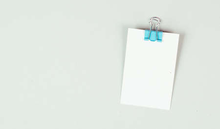 Blank white paper with a paperclip on a gray colored background, copy space for text, reminder or message in the office, communication concept