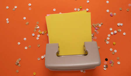 Multi-colored stickers for notes, reminders. On a yellow background, stickers around the screen. In the middle is an empty place. A place for text. COPY Space