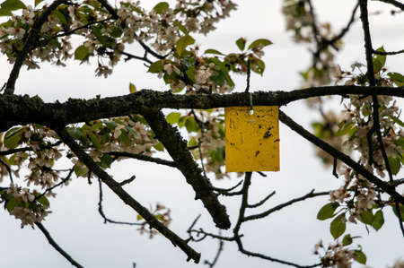 Fruit tree moth sticky trap with pheromone lure to monitor insect adult infestations