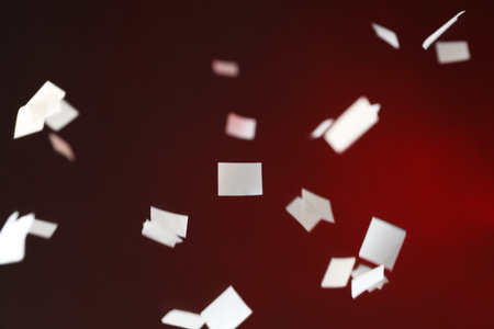 Sticky notes fluttering in the air against a pure white background. Generative AI.