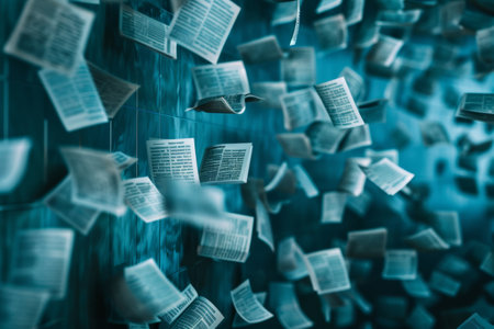 Crumpled paper notes swirl in the air, blending creativity with playful chaos.