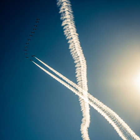 Airplane festival in the sky of Gijón.The smoke from the planes shows the colors of the flag of Spain.