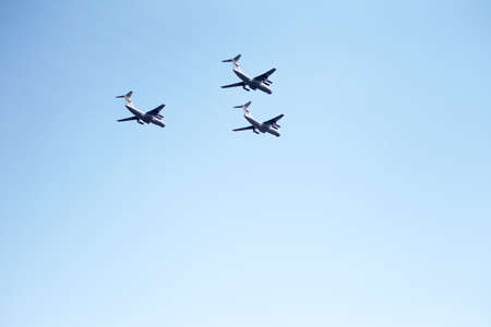 MOSCOW, RUSSIA - MAY 7, 2015: A group of airplane. Rehearsal of parade devoted to May 9, 70-th Victory Day in World War II. May 7, 2015 in Moscow.