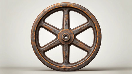 Rusty blue metal gear with circular patterns and weathered texture. That the image is generated using AI.