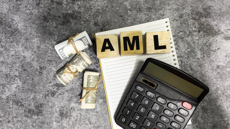 Wooden blocks AML. Anti Money Laundering concept. Financial monitoring, Identification of suspicious transactions. Business and finance. Fight against criminal money