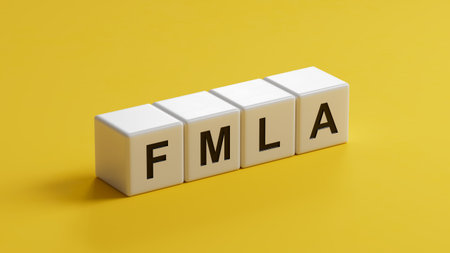 FMLA word written on wooden cubes with copy space.close up of wooden cubes,Business Concept.3D rendering on yellow background.