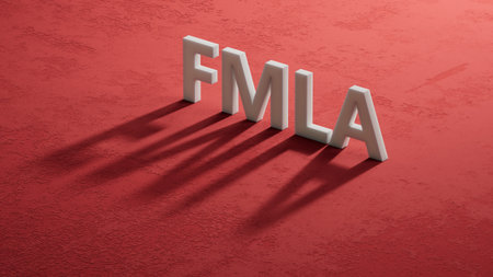 FMLA word written on shadow of 3d charcaters with copy space.close up of shadow of 3d charcaters,Business Concept.3D rendering on red background.