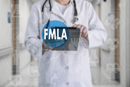 Family Medical Leave Act. FMLA on the touch screen with icons on the background blur medicine Doctor in hospital.Innovation treatment, service, health data analysis. Medical Healthcare Concept of Family Medical Leave Act, FMLA