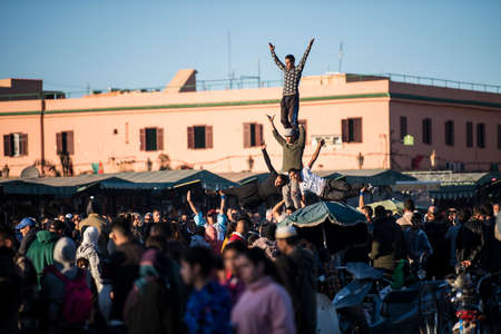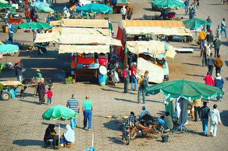 Marrakech, Morocco - April 29, 2019: Jamaa el Fna market square, Marrakesh, Morocco, north Africa